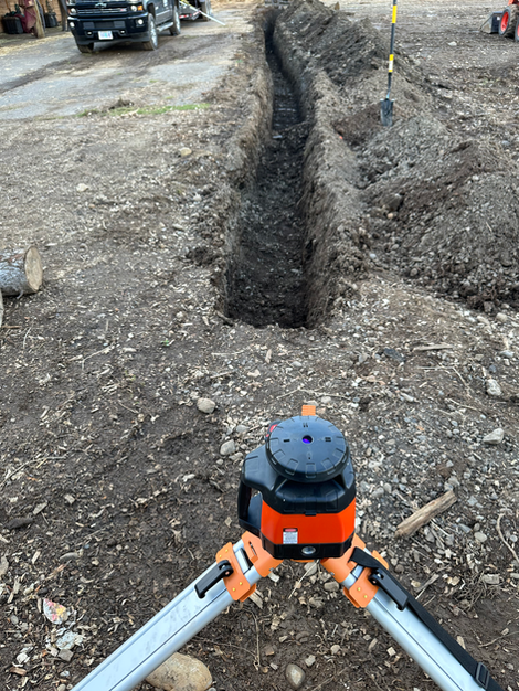 Our excavator can trench 18" wide and 8' deep. We use a laser on all trenching projects to ensure that we have the desired slope. We offer a variety of french and rain drain systems and work with our customer to select materials that fit their budget.
